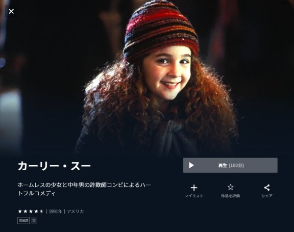 U-NEXTで映画「カーリー・スー」の動画を無料トライアルでフル視聴