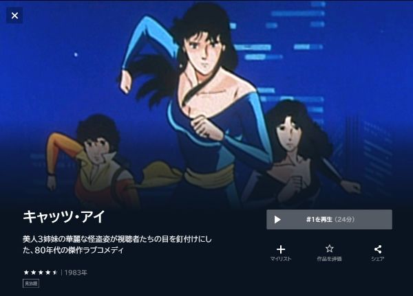 - 「キャッツ・アイ(1期)」が全話見放題で視聴可能