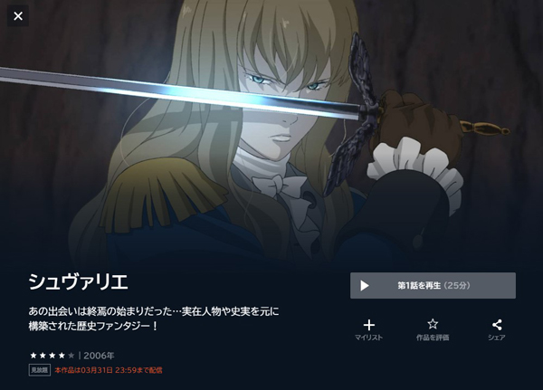 Netflixでアニメ「シュヴァリエ 〜Le Chevalier D’Eon〜」の動画の配信予定