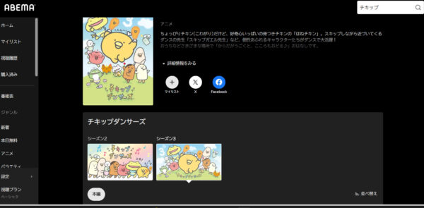 また、ABEMAは独自のオリジナル動画やコンテンツがあり、アニメ「チキップダンサーズ 第3期」以外も視聴できます。