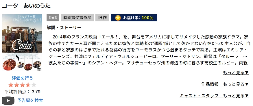 映画「コーダ あいのうた」は440円でレンタル配信してるので、フルで視聴できます。