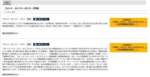動画配信サービスとは少し違い、DVDレンタルサービスになりお試し期間で、「コメット・ルシファー」の動画を全話視聴することができます。