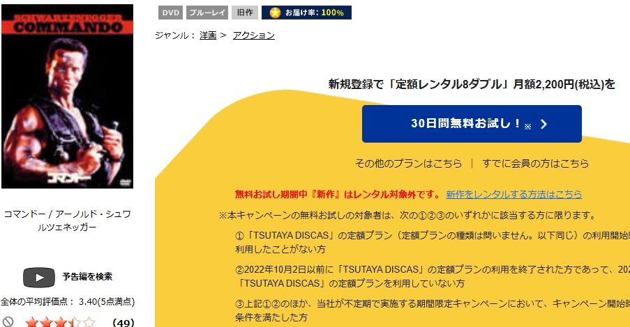 TSUTAYA DISCASで映画「コマンドー」の動画をフル視聴