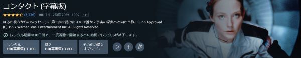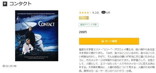 映画「コンタクト」は299円でレンタル配信してるので、フルで視聴できます。