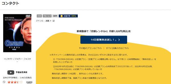 TSUTAYA DISCASで映画「コンタクト」をDVDレンタルで無料視聴