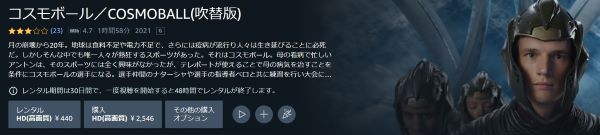しかし、映画「コスモボール」はレンタル作品のため、440円かかってしまい無料視聴することができません。