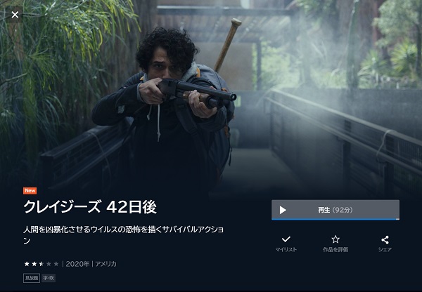 U-NEXTで映画「クレイジーズ 42日後」動画を無料トライアルでフル視聴