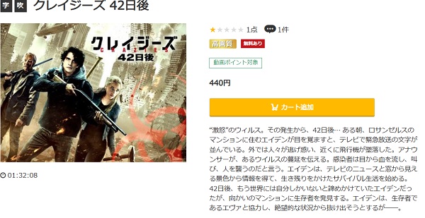 初回お試し期間が14日間あり、映画「クレイジーズ 42日後」の動画も440円でフル視聴することができます。
