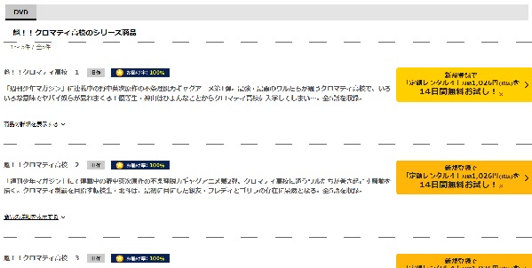動画配信サービスとは少し違い、DVDレンタルサービスになりお試し期間で、「魁!!クロマティ高校」の動画を全話視聴することができます。