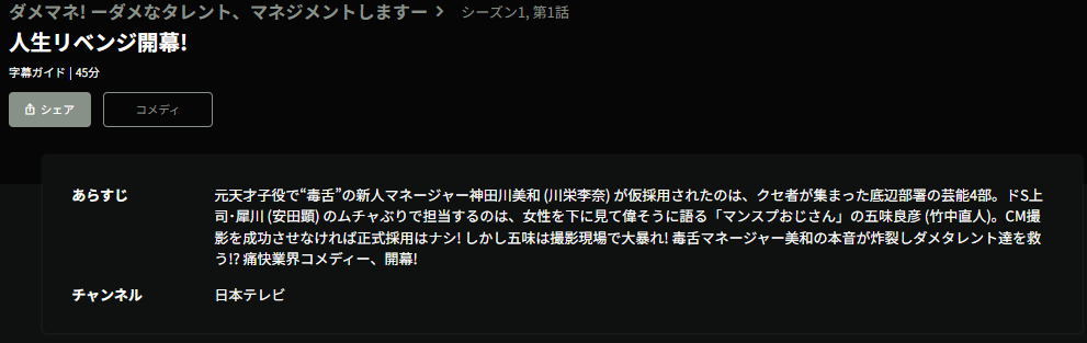 - 「ダメマネ! -ダメなタレント、マネジメントします-」が全話見放題で視聴可能