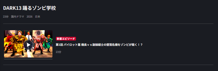 2026年1月10日(土)から放送スタートのドラマ「DARK13 踊るゾンビ学校」の動画を見逃し配信で視聴できる配信サイトを紹介します。