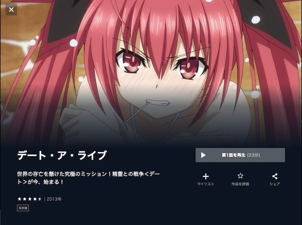 今後、Netflixでアニメ「デート・ア・ライブ 1期」の配信を待つより、U-NEXTでアニメ「デート・ア・ライブ 1期」は全話配信されているので、お試し期間のあるU-NEXTを利用することをおすすめします。