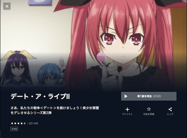 今後、Netflixでアニメ「デート・ア・ライブ 2期」の配信を待つより、U-NEXTでアニメ「デート・ア・ライブ 2期」は全話配信されているので、お試し期間のあるU-NEXTを利用することをおすすめします。