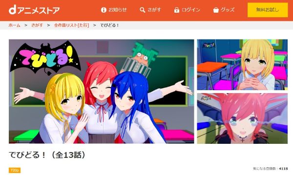 またdアニメストアは、アニメ「でびどる!」のシリーズや関連動画を全話視聴できます。
