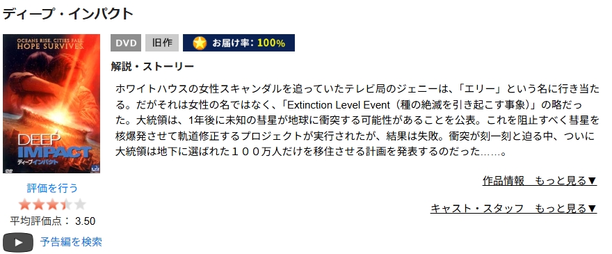 TSUTAYA DISCASで映画「ディープ・インパクト」をDVDレンタルしてフル視聴