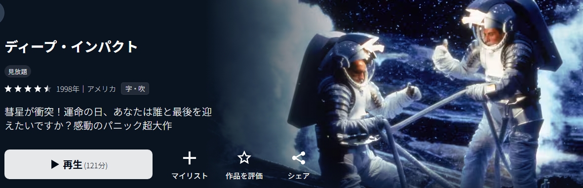 - 映画「ディープ・インパクト」がフルで視聴可能。