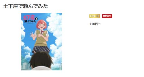 アニメ「土下座で頼んでみた」の無料動画を配信しているサイト