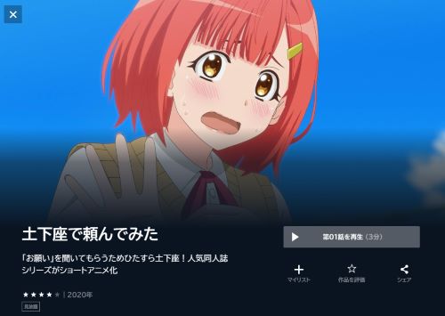 music.jpでアニメ「土下座で頼んでみた」の動画を全話無料視聴