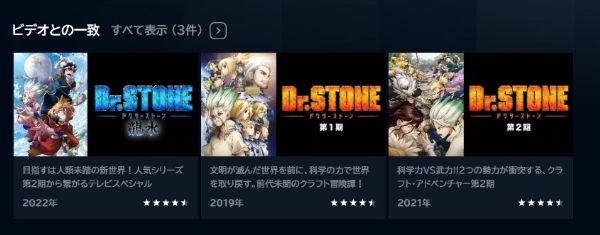 Netflixでのドラマ「Dr.STONE」シリーズの配信状況は以下になります。