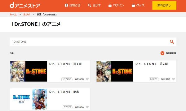 - 「Dr.STONE」の関連動画も無料で視聴できる。