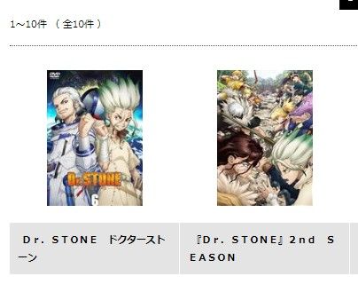 ツタヤディスカスで「Dr.STONE」のアニメをDVDでレンタルできるシリーズ作品はこちら。