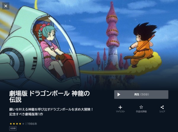 - 映画「ドラゴンボール 神龍の伝説」がフル視聴可能。