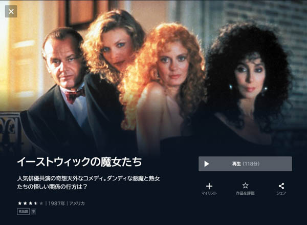 ただ、映画「イーストウィックの魔女たち」の関連作品の映画は配信しているので、見放題で視聴は可能です。