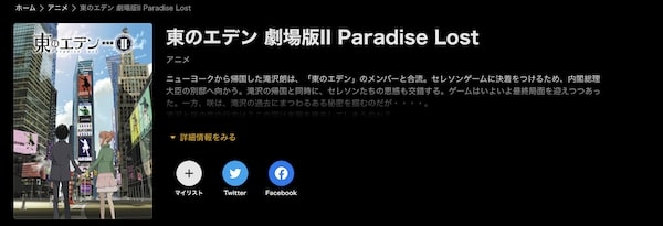 U-NEXTで映画「東のエデン 劇場版II Paradise Lost」の動画を無料トライアルでフル視聴