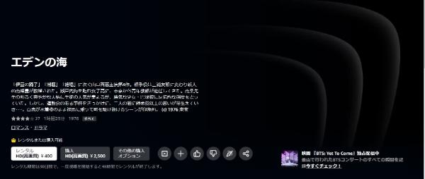 しかし、映画「エデンの海」はレンタル作品のため、400円かかってしまい無料視聴することができません。