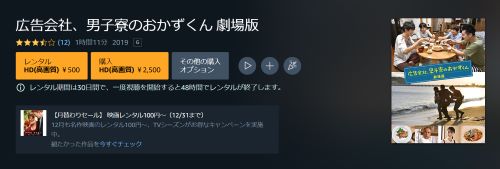 映画「劇場版 広告会社、男子寮のおかずくん」はAmazonプライムビデオでもフルで視聴することができます。