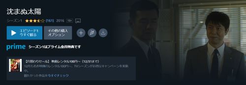 Amazonプライムビデオは、30日間のお試し無料期間があり「沈まぬ太陽」の映画をフルで視聴することができます。