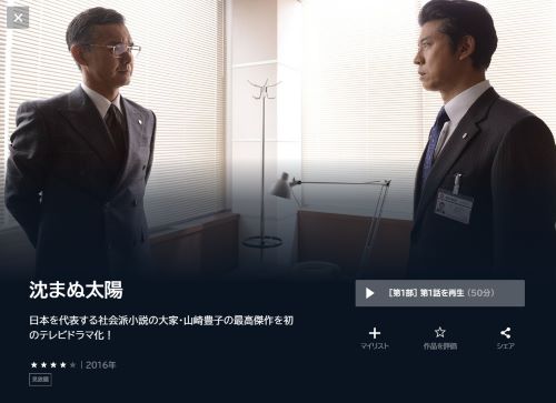 ただ、映画「沈まぬ太陽」の関連作品の映画は配信しているので、見放題で視聴は可能です。