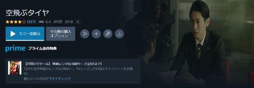 Amazonプライムビデオで、映画「空飛ぶタイヤ」をフルで視聴しながら他の動画も見放題で配信しています。
