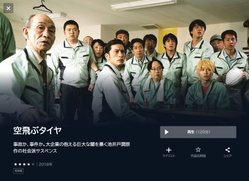 Netflixで映画「空飛ぶタイヤ」を配信しているか調査しました。