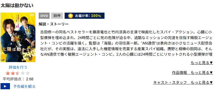 TSUTAYA DISCASで映画「太陽は動かない」をDVDレンタルしてフル視聴