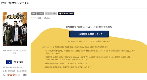 その中でも、映画「闇金ウシジマくん Part1」を無料視聴するのにおすすめは『TSUTAYA DISCAS』です。