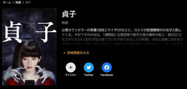 Amazonプライムビデオで映画「貞子」をフルで無料視聴