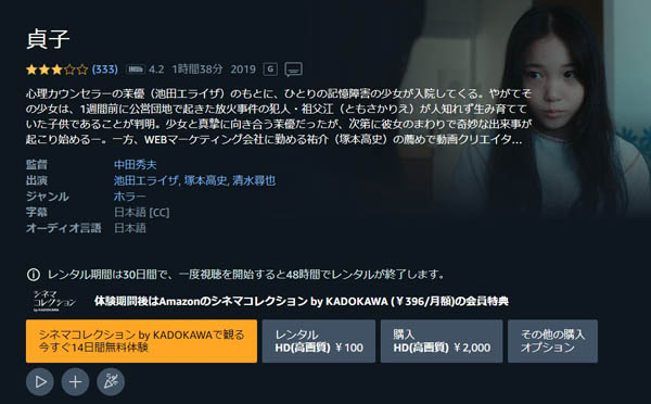 また、映画「貞子」の関連作品の映画も無料トライアル中にフル視聴が可能です。