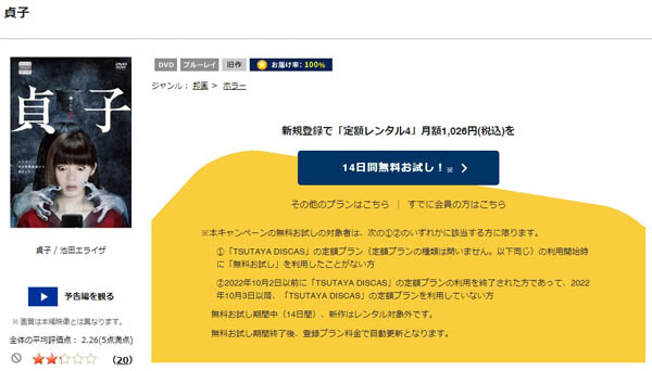 TSUTAYA DISCASで映画「貞子」をDVDレンタルで無料視聴
