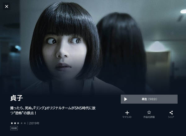 U-NEXTで映画「貞子」の動画を無料トライアルでフル視聴