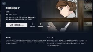 - アニメ「英國戀物語エマ」や関連作品をフルで楽しめる。