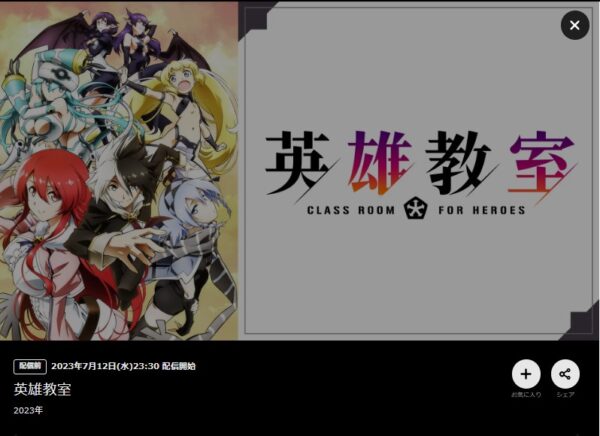 アニメ「英雄教室」が全話視聴できる動画配信サイトを調査しました。