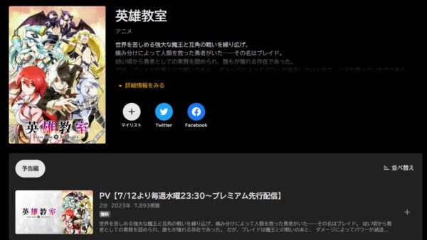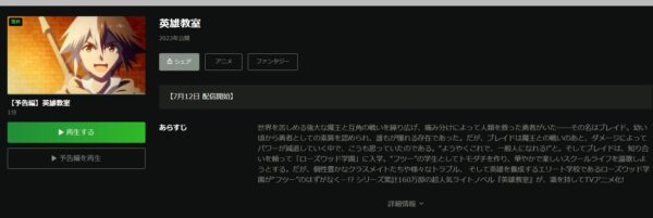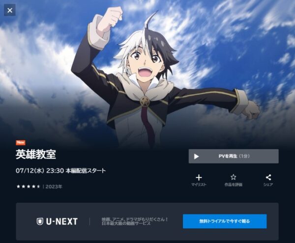 U-NEXTでアニメ「英雄教室」の動画を無料トライアルで全話視聴