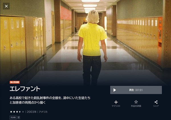 U-NEXTで映画「エレファント」動画を無料トライアルで全話視聴