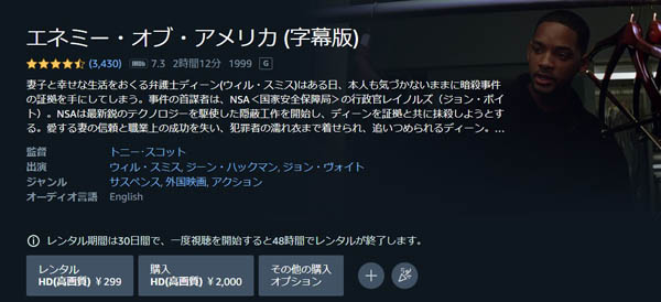 映画「エネミー・オブ・アメリカ」はAmazonプライムビデオでもフルで視聴することができます。