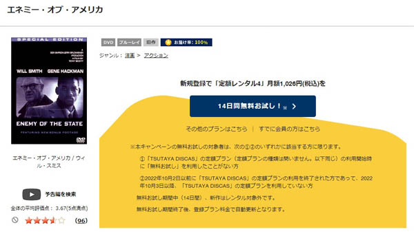 「エネミー・オブ・アメリカ」の映画を無料視聴するのにTSUTAYA DISCASをおすすめする理由として、
