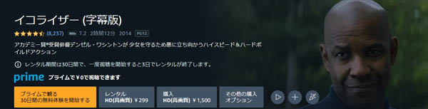 Amazonプライムビデオは、30日間のお試し無料期間があり「イコライザー」の映画をフルで視聴することができます。