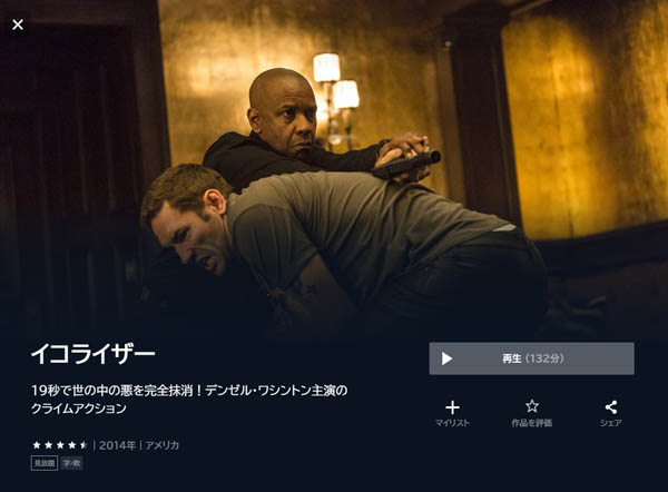 また、映画「イコライザー」の関連作品もフルで視聴できます。