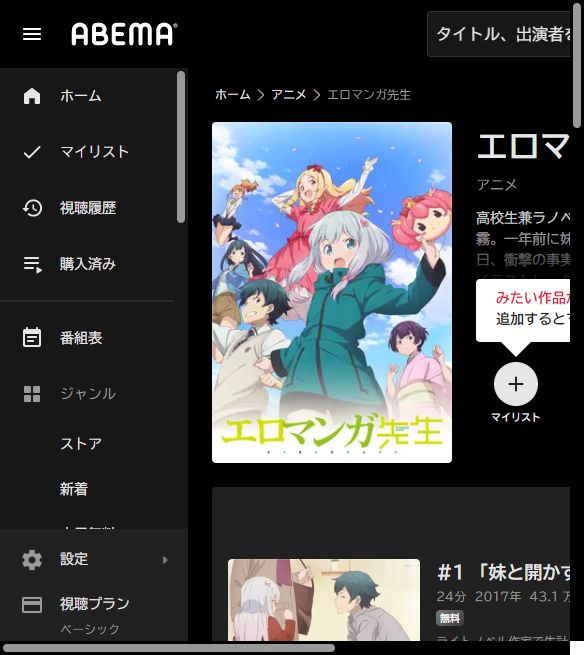 ABEMAでアニメ「エロマンガ先生」の動画を全話無料視聴
