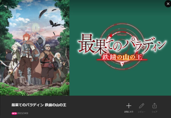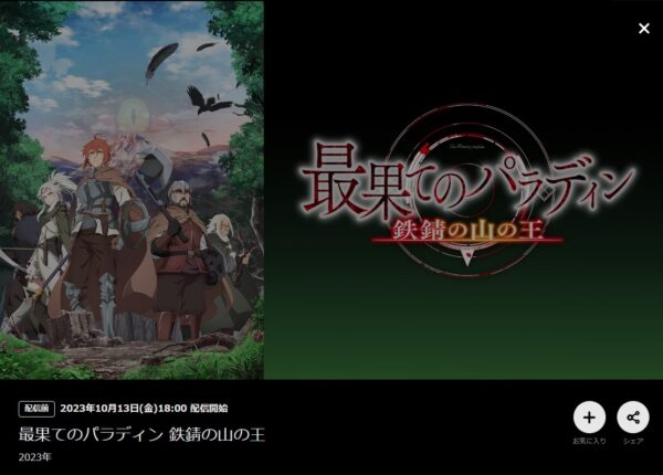 アニメ「最果てのパラディン 鉄錆の山の王」が全話視聴できる動画配信サイトを調査しました。